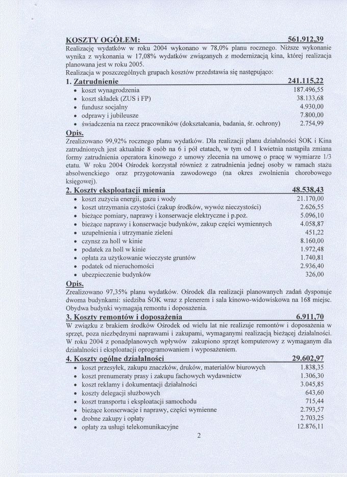 Sprawozdanie finansowo-rzeczowe za rok 2004